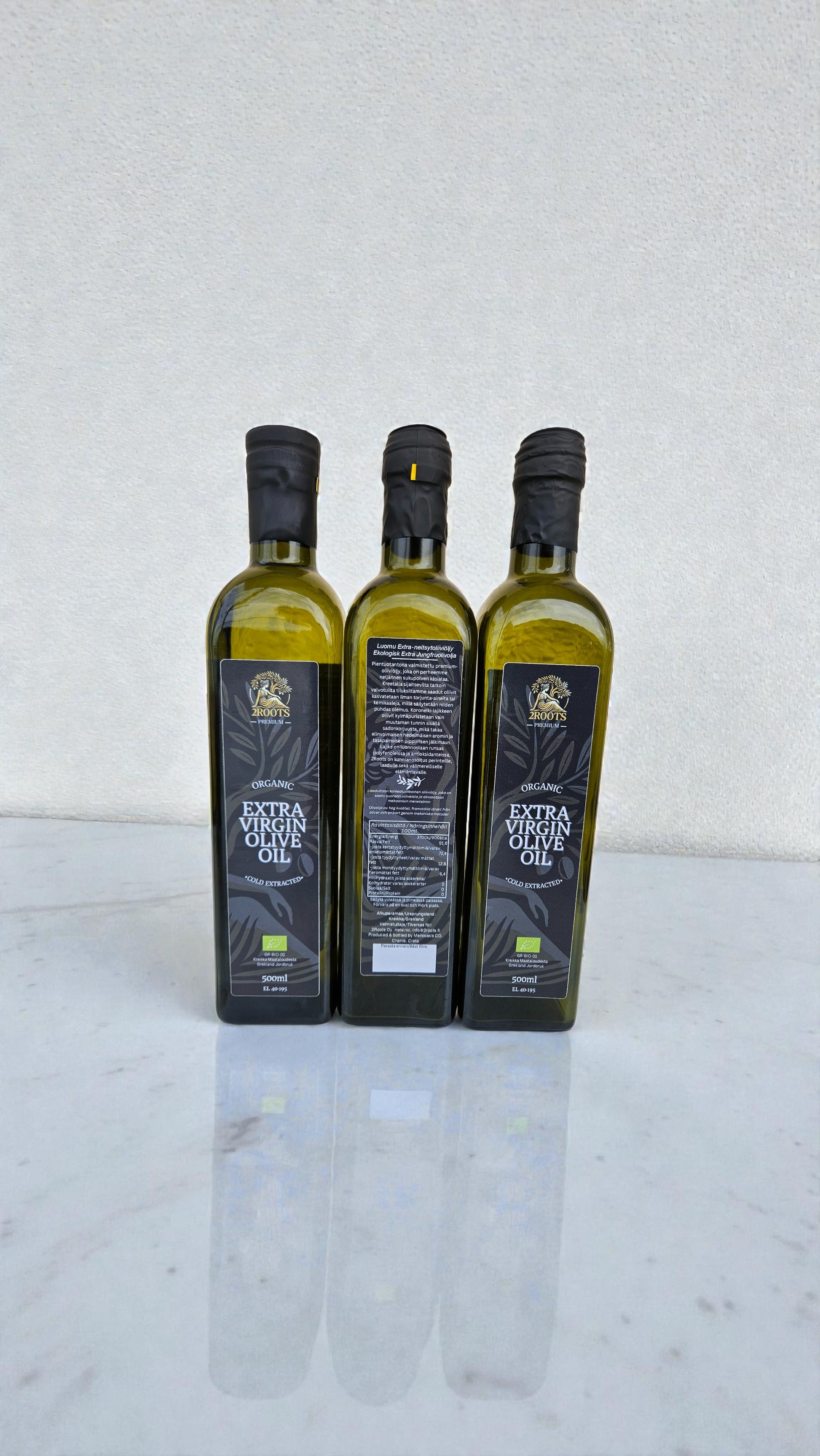 EU-sertifioitu luomu ekstra-neitsytoliiviöljy, 3 pullon pakkaus.